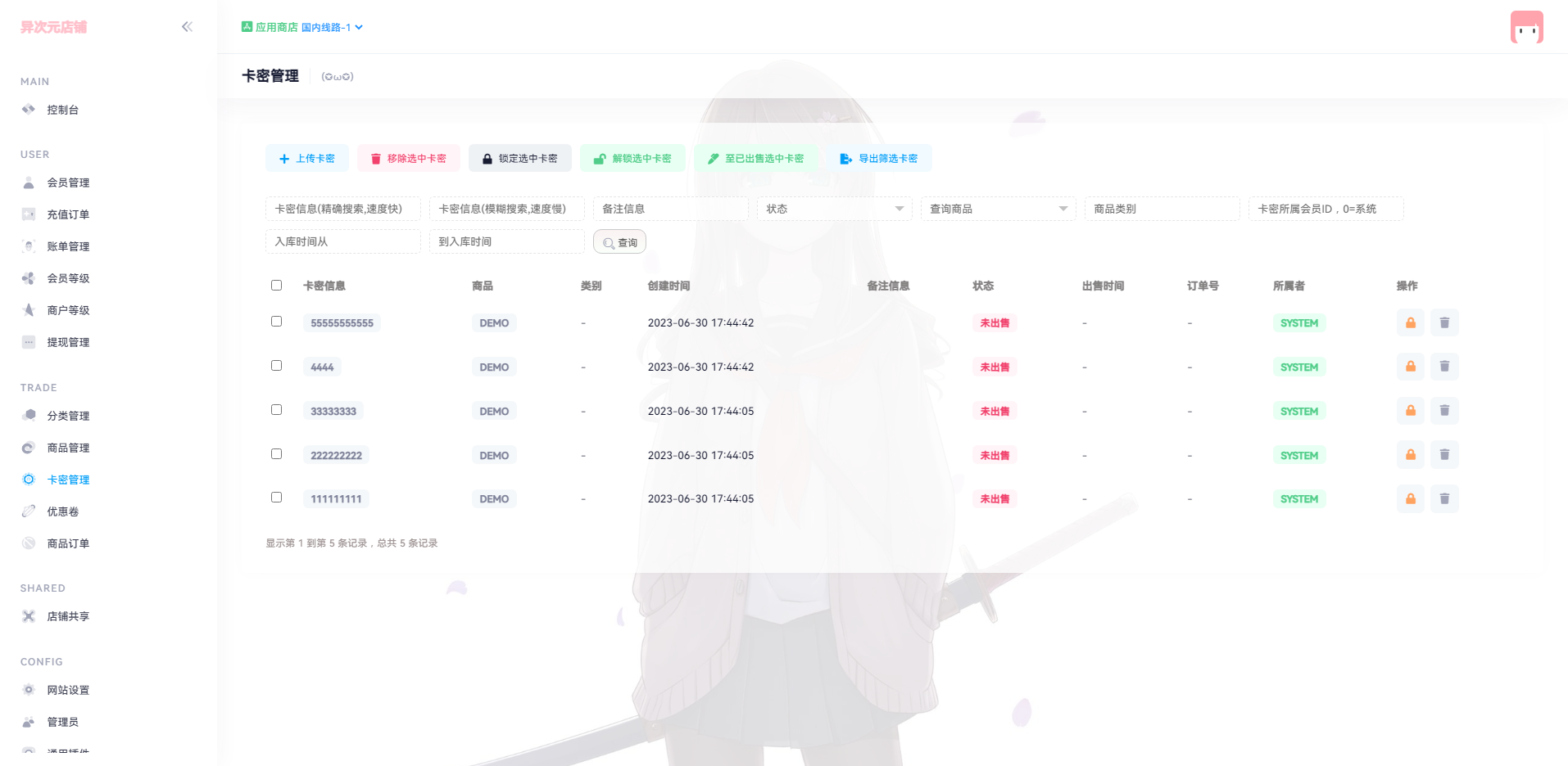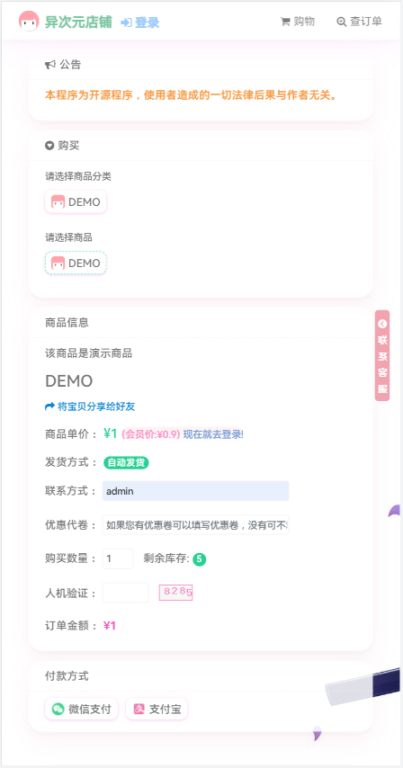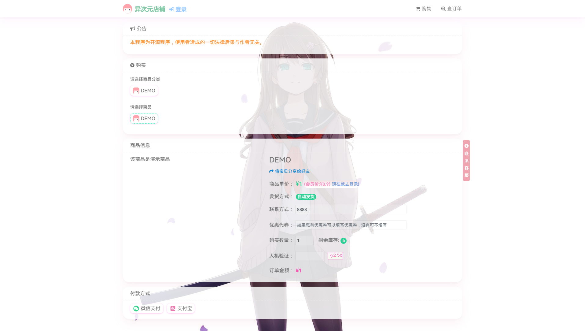 【商业运营版】异次元发卡源码/二次元作风发卡网全开源源码/对接免签约支付接口