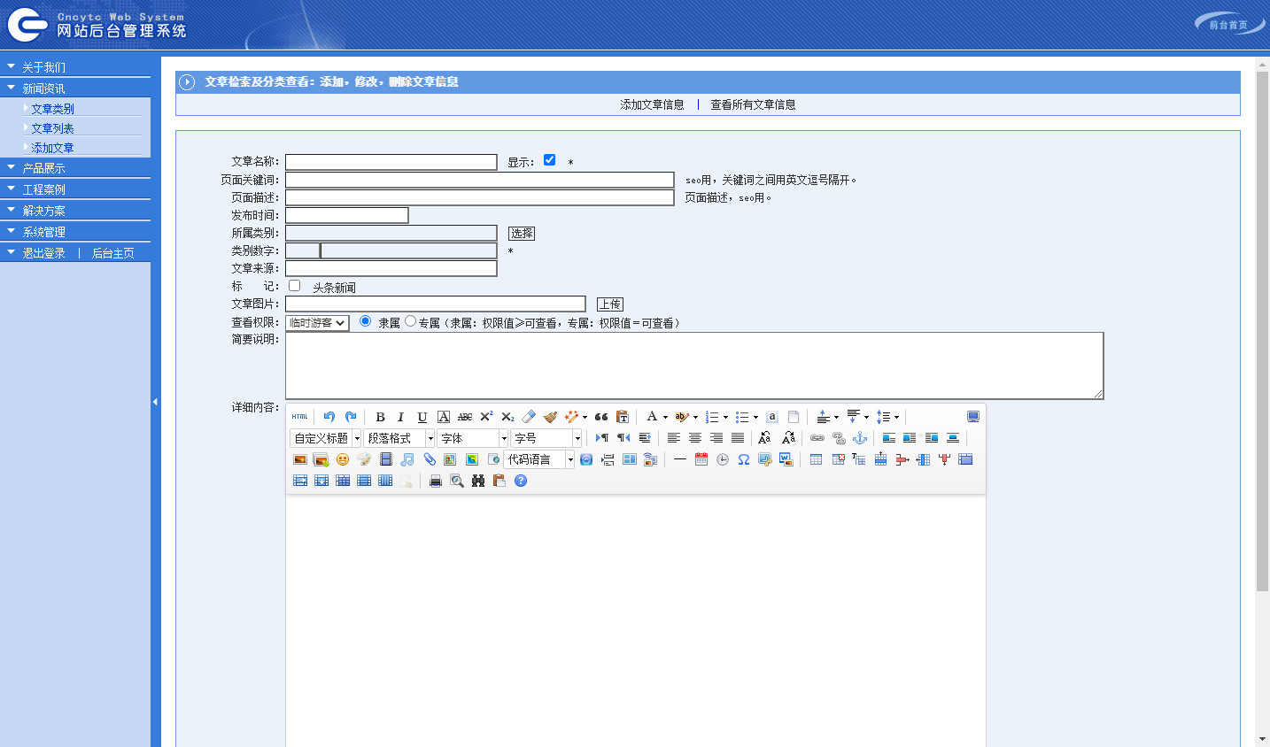 其实就是个标准的通用企业建站系统,包含了产品、新闻、解决方案、成功案例、公司简介、联系我们等等相关模块。