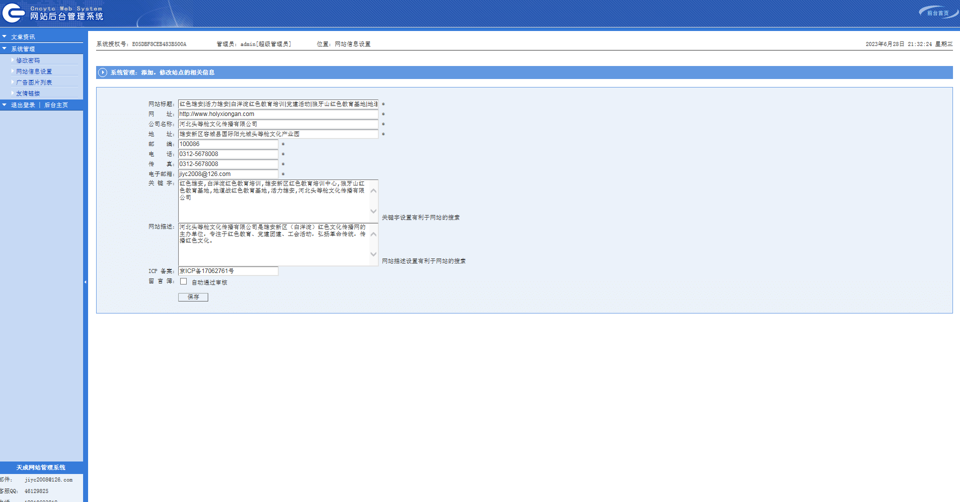 进入后台在“网站设置”里修改一下新公司的信息基本上就可以交付使用了。